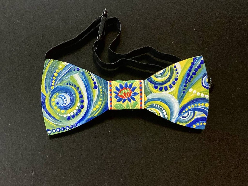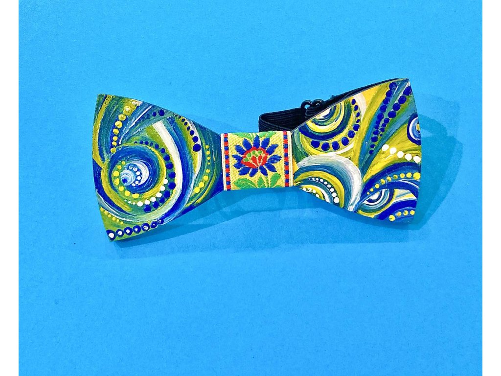 Originálny, ručne maľovaný drevený motýlik s abstraktným dizajnom.. :) Maľovaný je akrylovými farbami, povrch upravený ochranným lakom. Veľkosť gumičky je nastaviteľná.
