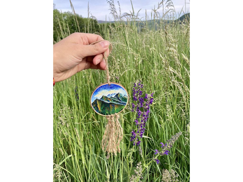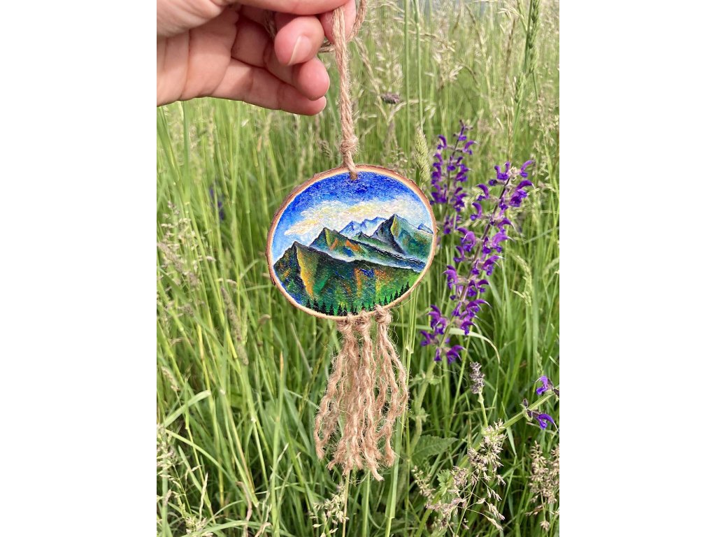 Ručne maľovaný talizman do auta (alebo kdekoľvek chcete :) ).. maľovaný je akrylom na dreve, prelakovaný.. Na zadnej strane s nápisom Hory volajú!
